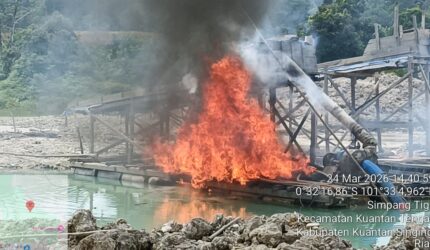 Berita Polres Kuansing Bergerak Cepat, Tiga Rakit PETI di Jantung Kota Teluk Kuantan Dimusnahkan