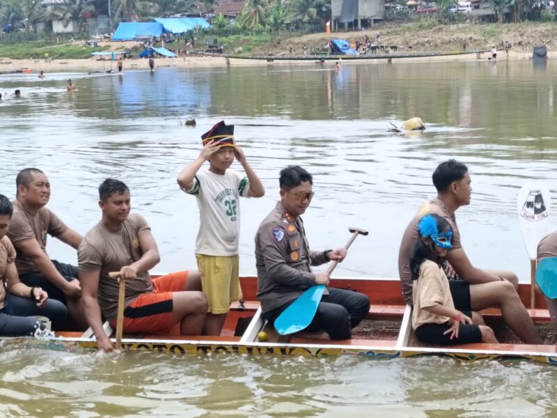KUANTAN SINGINGI- Dalam rangka mendukung pelestarian budaya lokal, Kapolres Kuansing AKBP R. Ricky Pratidiningrat, S.I.K. M.H, ambil bagian dalam kegiatan Pacu Jalur Eksebisi yang digelar meriah di tepian Narosa, Teluk Kuantan pada Sabtu (23/8/25).