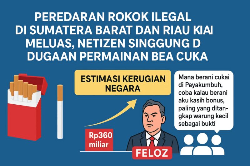 Sumbar-Riau|| Prabu24.com–Peredaran rokok ilegal di wilayah Sumatera Barat (Sumbar) dan Riau kian meluas dan menjadi sorotan banyak pihak (25/8/2025).