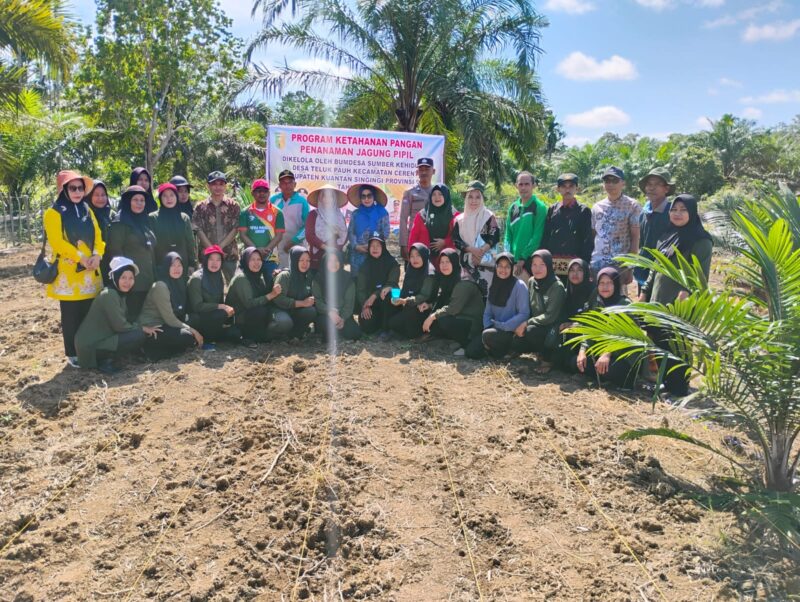 Di Desa Teluk Pauh Kecamatan Cerenti, penanaman jagung pipil dilaksanakan di lahan seluas 1 hektare yang dikelola oleh Bumdes Sumber Kehidupan. Kegiatan tersebut dihadiri oleh Bhabinkamtibmas Brigadir Windrahadi mewakili Kapolsek Cerenti, Kasi PMD mewakili Camat Cerenti, Kepala Desa Teluk Pauh Syamsur K, Kepala BPP Pertanian, PPL, Ketua BPD, Direktur Bumdes, TP PKK, serta masyarakat setempat.