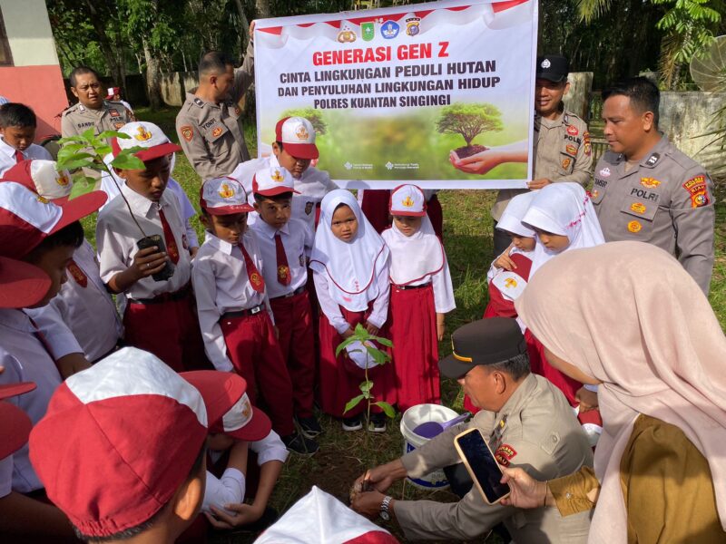 KUANTANSINGINGI,– Jajaran Polres Kuantan Singingi melaksanakan kegiatan Program Kapolda Riau tentang Green Policing serta Gerakan Gen Z Cinta Lingkungan dan Peduli Hutan, yang dilaksanakan secara serentak di sejumlah sekolah dasar di wilayah Kabupaten Kuantan Singingi, Senin (27/10/2025).