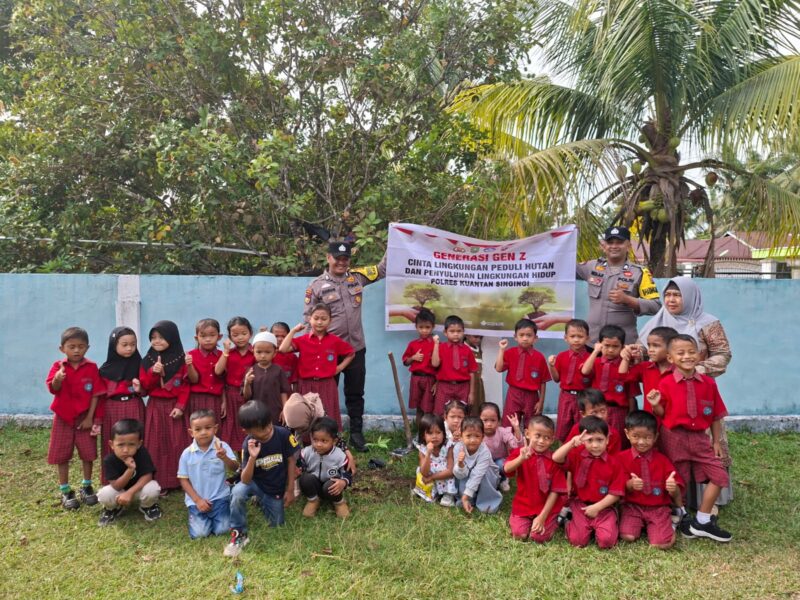 KUANTANSINGINGI,– Polres Kuantan Singingi kembali menunjukkan komitmennya dalam mendukung Program Kapolda Riau tentang Green Policing melalui rangkaian kegiatan edukasi lingkungan dan penanaman pohon yang dilaksanakan di tiga wilayah berbeda, yakni Polsek Cerenti, Polsek Pangean, dan Polsek Singingi pada Rabu (19/11/2025).