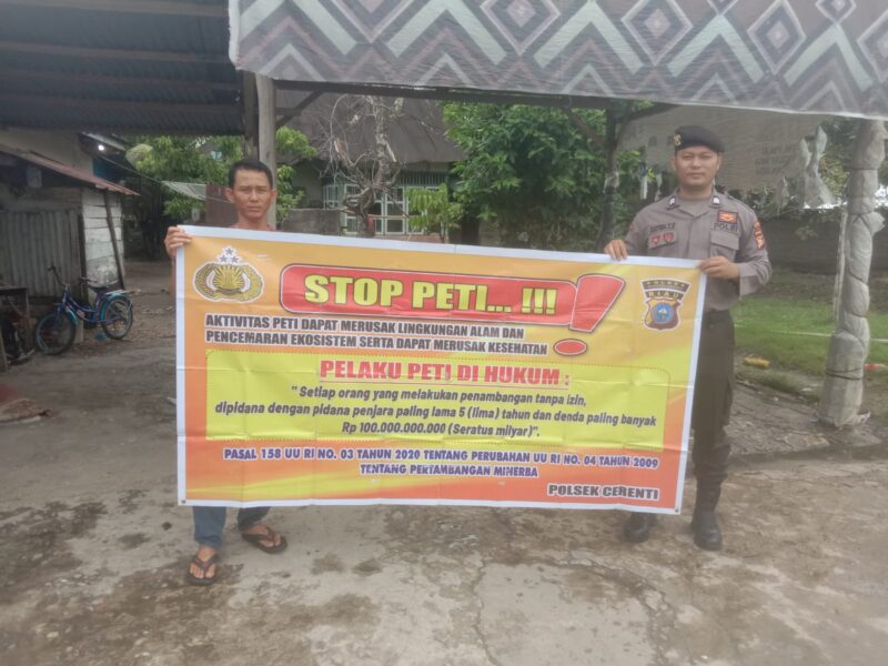 Di wilayah Polsek Cerenti, personel turun langsung memberikan himbauan kepada masyarakat Desa Kampung Baru Cerenti. Dalam kegiatan tersebut, warga diingatkan mengenai bahaya dan larangan melakukan pertambangan tanpa izin serta pentingnya menjaga kelestarian lingkungan demi keberlanjutan generasi mendatang.
