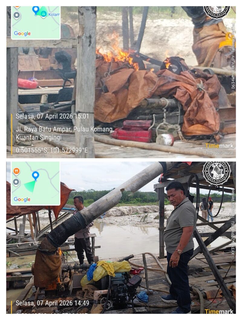 KUANTANSINGINGI,– Jajaran Polsek Kuantan Tengah bersama Opsnal Sat Reskrim Polres Kuantan Singingi (Kuansing) melaksanakan penertiban aktivitas Penambangan Emas Tanpa Izin (PETI) di wilayah hukumnya, Selasa siang (7/4/2026).