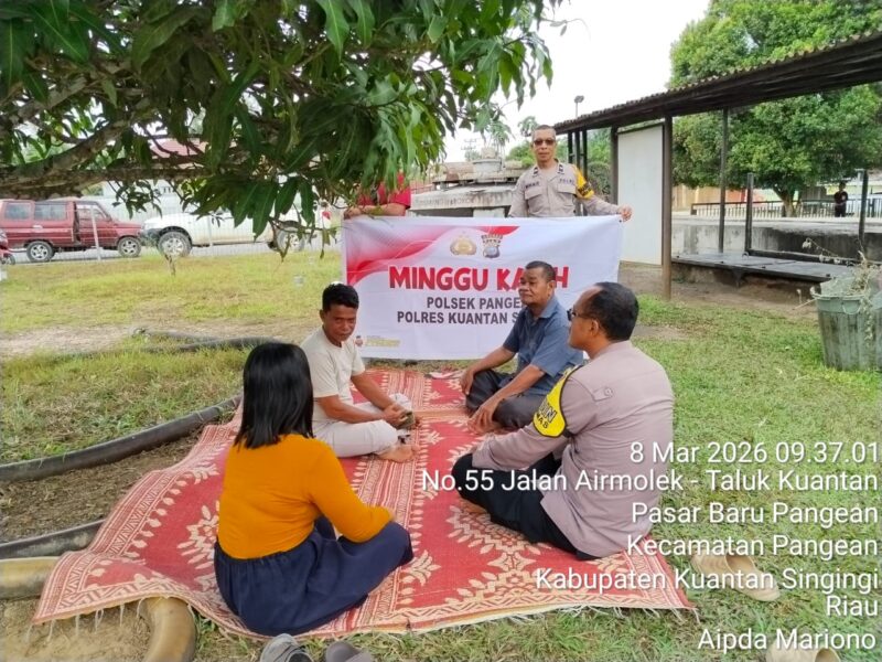 KUANTANSINGINGI,– Jajaran Polres Kuantan Singingi terus menunjukkan komitmennya dalam mendekatkan diri dengan masyarakat melalui program Minggu Kasih. Kali ini kegiatan tersebut dilaksanakan oleh Polsek Kuantan Tengah dan Polsek Pangean pada Minggu (8/3/2026).