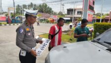Dalam kegiatan tersebut, personel Polsek Kuantan Tengah menyerahkan satu paket sembako kepada masyarakat kurang mampu atas nama Waluyo sebagai bentuk kepedulian Polri kepada warga yang membutuhkan.
