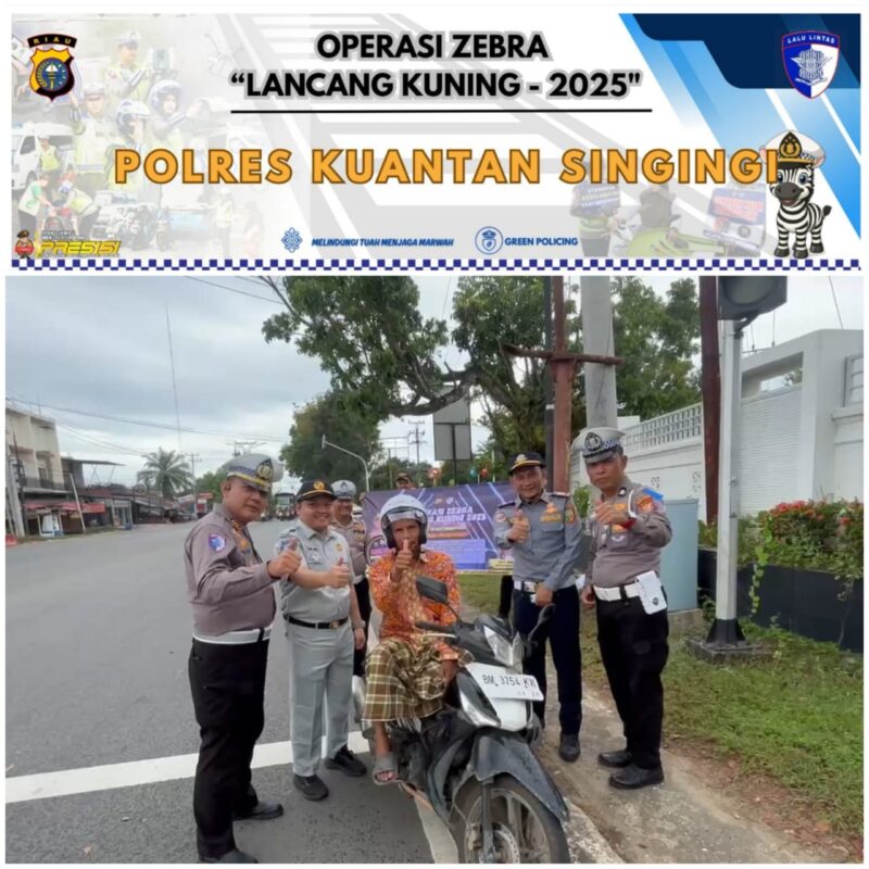 Satlantas Polres Kuantan Singingi Bersama Forum LLAJ Bagikan Helm Gratis dan Gencarkan Sosialisasi Keselamatan Berkendara pada Ops Zebra LK 2025