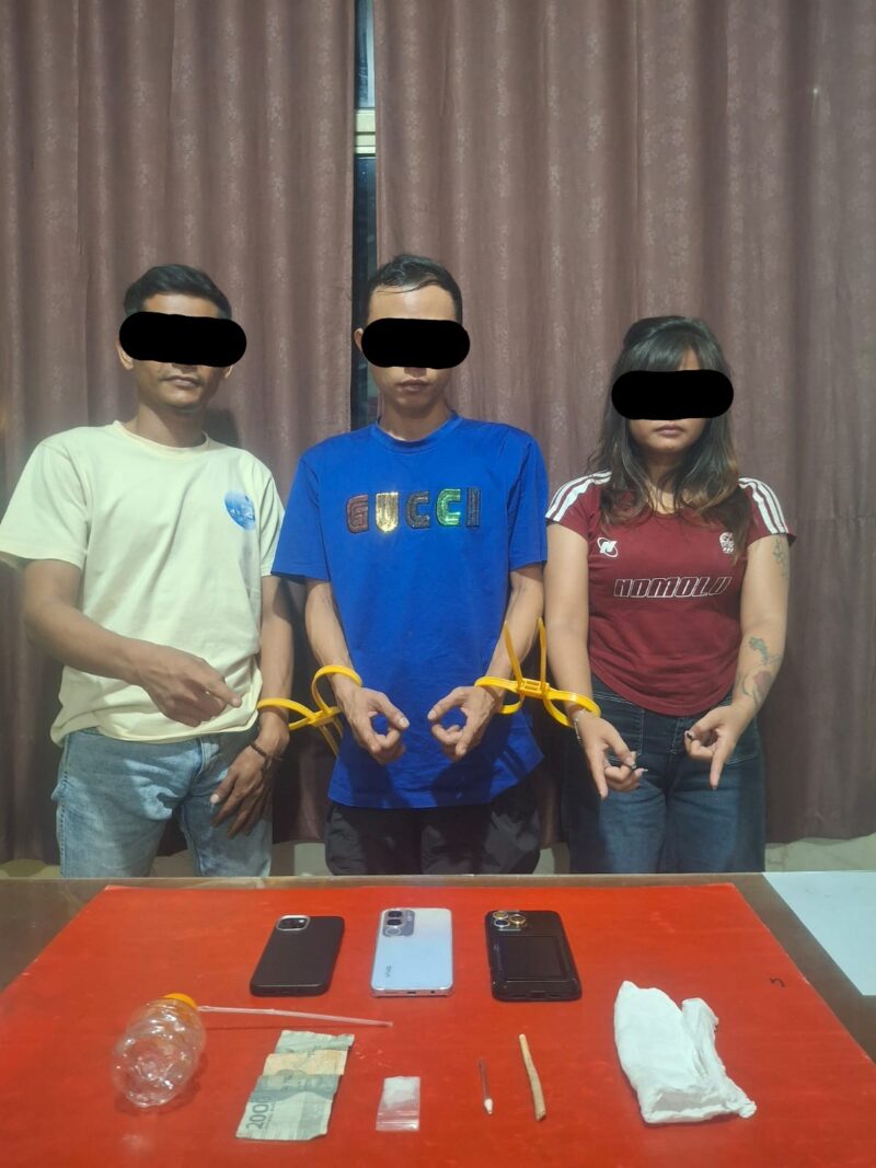 Sekira pukul 22.30 WIB, tim mendapati kendaraan tersebut berhenti di sebuah penginapan atau kontrakan Azura di Kelurahan Sungai Jering. Petugas kemudian melakukan pengamanan terhadap tiga orang yang berada di dalam mobil, masing-masing berinisial AP (35), AM (35), dan AA (27).