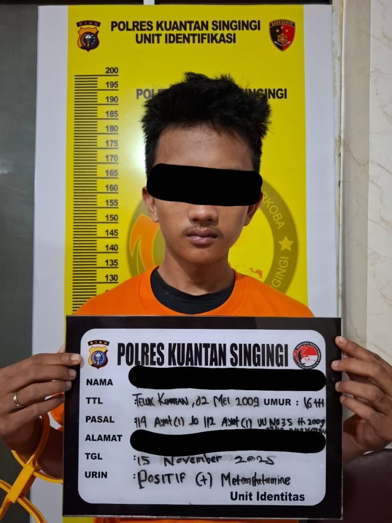 KUANTAN SINGINGI,– Tim Elang Kuantan Satuan Reserse Narkoba Polres Kuantan Singingi kembali menunjukkan komitmennya dalam memberantas peredaran narkotika. Seorang remaja berinisial RRP (16) diamankan atas keterlibatannya dalam peredaran sabu di Kelurahan Sungai Jering, Kecamatan Kuantan Tengah, pada Sabtu (15/11/2025).